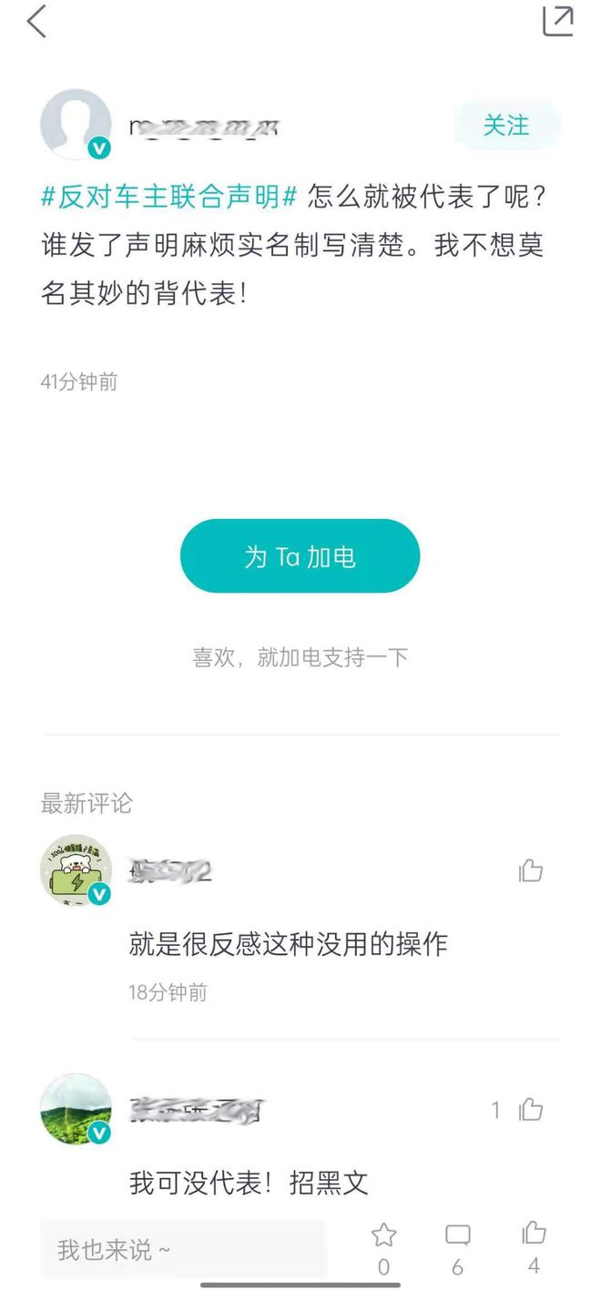 不过,部分蔚来车主在蔚来APP社区和社交媒体上明确表示,对于这种“被代表”不敢苟同: