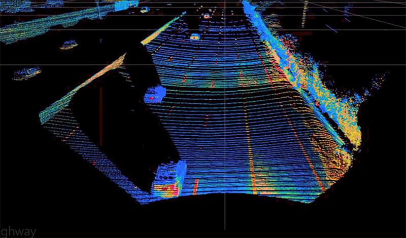 在蔚来汽车官方发布的效果图中,我们可以看到高位激光雷达俯视道路的效果。尽管实际效果我们尚且只能预测,但从原理上来说高位激光雷达的布局确有优势。