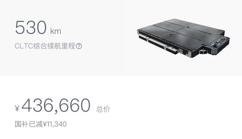 元旦过后,蔚来汽车更新了蔚来ET7的售价,其中常规版车型如果选择75kWh标准续航电池包,将享受国家补贴11340元,整车购买实际价格为436660元,使用电池租用服务的购车价为366660元,电池每月租金980元。