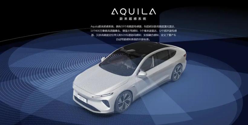 今年3月,蔚来旗舰电动轿车ET7开启交付,ET7搭载了蔚来超感系统Aquila,其“瞭望塔式”传感器布局采用1颗超远距离高精度激光雷达。