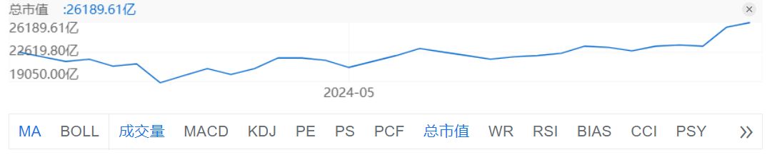 发布财报后的第二天,英伟达股价高开后突破每股1000美元,收于每股1037.99美元,涨9.32%,总市值达到2.55万亿美元。英伟达股价当日的上涨使得该公司市值增加了大约2180亿美元,约合人民币1.58万亿元。截至美东时间5月24日休市,英伟达总市值达2.62万亿美元。