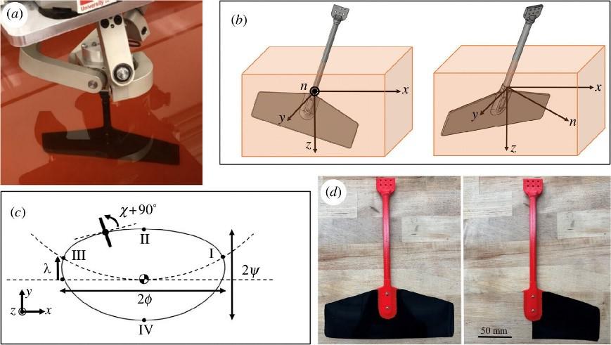 许多动物利用扑翼作为推进手段,同理,配备了扑翼器的机器人也能有效地推进自己。但是,动物界的扑翼动物(这里指鱼和昆虫)还有另一个诀窍。即使翅膀或鳍受损,这些动物也能通过调整运动机制来进行补偿。一些鱼类在鳍受损高达76%的情况下仍能存活和游动。