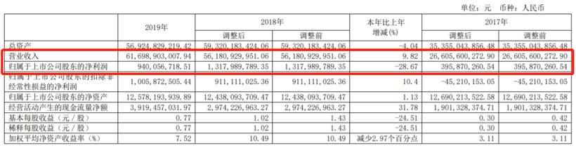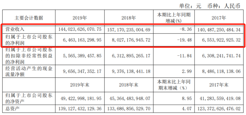 华域汽车(600741)2019年年度报告显示,公司年内实现营业总收入1440.24亿元,同比下滑8.36%;实现归属于母公司所有者的净利润64.63亿元,同比下滑19.48%;每股收益为2.05元。