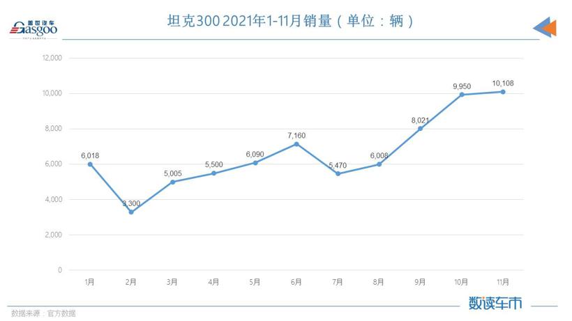 最近两年,和北汽一样看好越野车市场的还有长城汽车。去年年中时候,长城汽车发布了三大技术平台,其中之一就是专注于越野车的坦克平台,坦克300是基于该平台打造的首款车型。20多万的售价就能拥有“三把锁”,再加上蠕行模式和坦克转弯等功能的加持,坦克300上市后迅速就成为终端市场上的当红车型。也正是因为上市后销售成绩喜人,原本是WEY品牌旗下车型的坦克300不久后就独立门户,成为长城新品牌——坦克旗下的首款车型。2020年年底上市以来,坦克300累计售车已经超过7万辆(长城汽车旗下另一款主打越野的产品——哈弗大狗,2021年前11个月销量接近9万辆)。此外,坦克品牌旗下的第二款车型坦克500也已经公布预售价格,33.5万-39.5万的售价虽然不低,但从当前的市场热度看,新车应该也不愁销量。