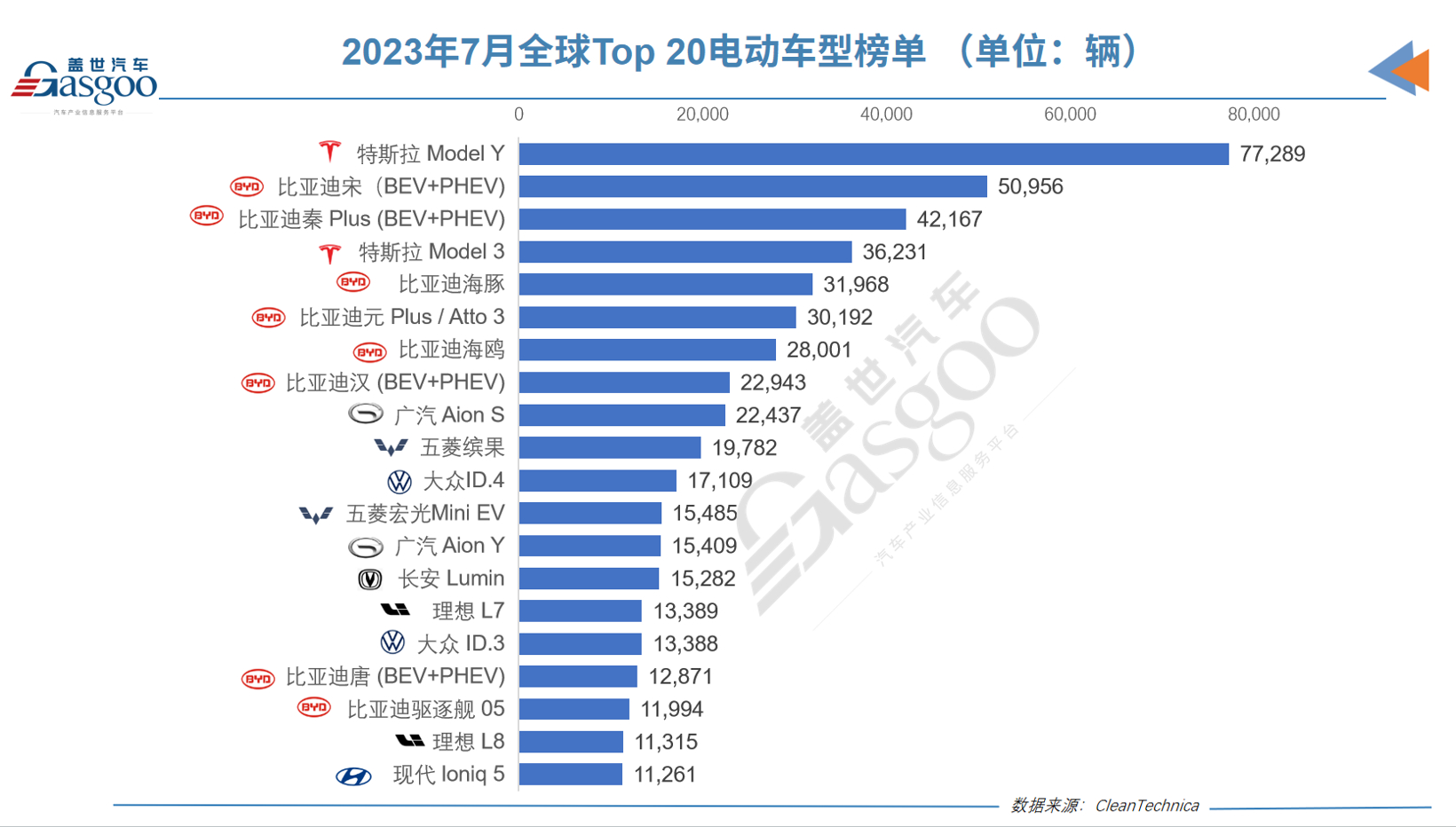 7月全球Top 20电动车品牌榜:上汽通用五菱重回前三宝座