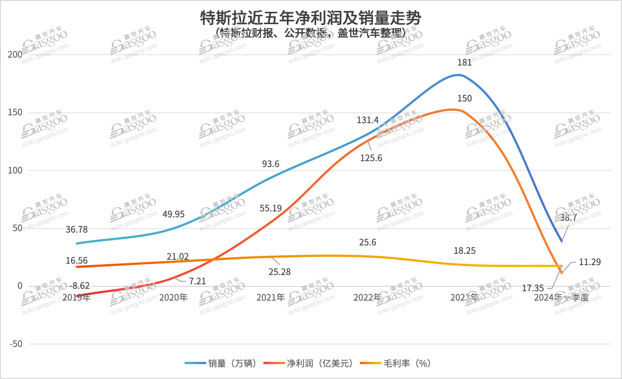特斯拉作为电动车智能化技术的创新引领者,直到2020年才实现扭亏为盈。那一年,特斯拉全球销量为50万辆,毛利率达到21%,净利润达7.2亿美元,终结了10年的亏损期。此后,销量的持续攀升推动其盈利能力不断提升,2023年净利润高达150亿元,毛利率仍保持在18%左右的可观水平。
