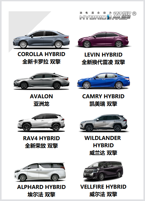 丰田当前在国内销售的混动车型,图片来源:丰田中国官网